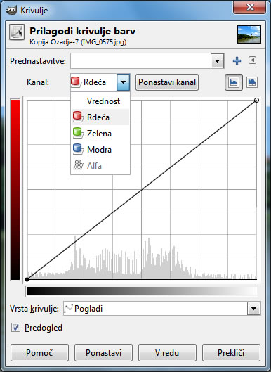 Modri kanal: x1:0 y1:24; x2:255 y2:233 (spremenimo položaj dveh obstoječih točk)