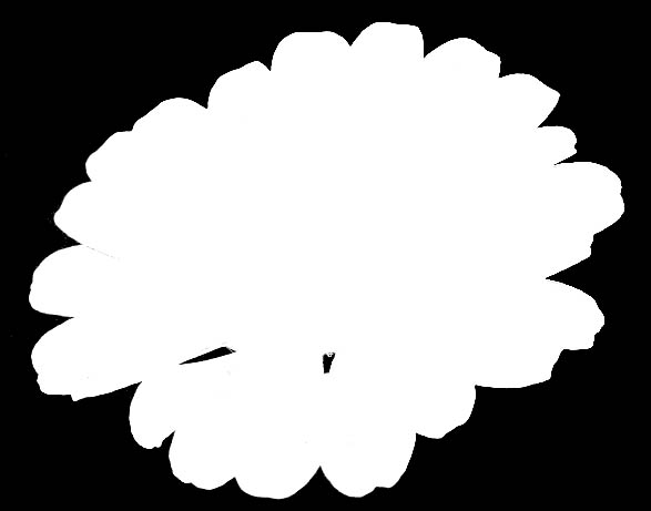 Sedaj z belim čopičem pobarvaj preostala črna območja znotraj cveta. Pazi na tiste predele, kjer se vidi ozadje med nekaterimi cvetnimi listi. Željeni rezultat je na spodnji sliki.
