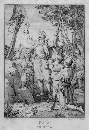 | Stritarjev cikel pesmi 'Raja', ki motivno zajema hercegovsko bosansko vstajo proti Turkom, je nastal proti koncu leta 1875 (1). Naslednje leto je začel izhajati v obnovljenem Zvonu. Leta 1877 je 'Rajo' na Stritarjevo povabilo začel ilustrirati Jurij Šubic (2). Stritar je ilustracije v naslednjem letu objavil kot priloge v Zvonu, jih pospremil s ponatisi posameznih pesmi ali važnejšimi odlomki iz njih in dodal krajši komentar. Ko je France Mesesnel leta kasneje v monografiji o bratih Šubicih rekonstruiral prvotni recepcijski položaj in določeval Stritarjevo vlogo, je zapisal oceno, da "pesnikov delež pri Jurijevem ciklu ne presega vtisa, ki so ga nanj napravile pesnitve, saj Stritar o slikarstvu in njegovih možnostih ni imel jasnih pojmov, kar je videti iz njegovih kasnejših napadov na francoski slikarski naturalizem (3)." Mesesnel je izpostavil razliko v njuni recepciji slikarstva in zatrjeval, da Zvonov "urednik podzavestno ni pokazal večjega navdušenja za Jurijeva realistična stremljenja (4)." Toda Mesesnelove teze o opozicionalnosti med slikarjem in pesnikom preprosto ne potrjuje nikakršna historična evidenca. Paradoks razlage o njunem odnosu, ki se nepreverjeno vzdržuje vse do danes, je to, da se konkretno sploh ne loteva analize recepcijskega položaja. Zato je z vidika kontekstualne in recepcijske umetnostne zgodovine treba 'Rajo' šele konkretizirati, ponovno analizirati gradivo in opredeliti podatke. Jurij Šubic se je seznanil s Stritarjem že kmalu po prihodu na Dunaj (5), kjer si je ogledal svetovno razstavo (6). Slikar se je začel pripravljati za sprejem na umetnostno akademijo (7), predložil komisiji za sprejem tudi ilustracijo Stritarjeve Medeje (8), postal gost akademije (9), kasneje pa tudi njen redni slušatelj (10). Stritar je Šubica, kot je domneval sam slikar (11) celo priporočil za denarno vladno podporo (12) in mu obljubil, da mu "bo razlagal o 'umetnostih'." (13) Pozneje je Jurij poročal, da je Stritar misel na učenje opustil (14), vendar sta stike ohranjala tudi naprej (15). "Videl sem neke 'skice' njegove",je leto po izdaji ilustracij v Zvonu zapisal Stritar, "predmet vsem je bil iz slovanskega, posebno slovenskega življenja. Kar sem videl, je bilo vse tako izvirno, karakteristično in zraven poetično, vse je kazalo tako nenavaden talent, tako lepo umetniško moč, da sem bil kaj prijetno iznenaden. V podobah, katerim predmet je bil vzet iz pesmi, kako izvrstno je bil mladi umetnik pogodil pesnikovo namero! In poleg tega, v nekih izvršenih slikah, kako dovršena oblika, kake lepe, mehke, plemenite poteze! Skratka: kar navdušen sem bil za mladega rojaka in zdajci se mi je rodila misel: To moč je treba porabiti, pokazati jo svetu, priporočiti jo rojakom, naj pazijo nanjo, skrbe naj, da se jim kako ne pogubi, goje jo naj, da se lepo razvija in sad obrodi, kakršnega obeta, domovini na čast in slavo. Sklenil sem izdajati list s podobami, in podobe listu naj bi bil risal Jurij Šubic (16)." Stritar se je pri ilustracijah Zvona torej najprej povezal z Jurijem Šubicem in prvotno nanj oprl svoj uredniški koncept, to potrjuje tudi Stritarjeva korespondenca z Levcem (17). Na Stritarjevo povabilo na začetku leta 1877, da bi za Zvon ilustriral cikel pesmi 'Raja', je Šubic poslal Stritarju v začetku junija tri risbe, ki jih je zasnoval v Trstu, kjer je bil pri vojakih (18). Korespondenca Šubica s Stritarjem ni ohranjena, vendar pa je iz Jurijevega pisma bratrancu Ivanu razvidno, da Stritar Šubicu v Trst vsaj do 5. julija ni odgovoril, čeprav je pričakoval njegovo presojo (19), oktobra istega leta pa se je Šubic že vrnil na Dunaj (20). Toda v Vabilu, ki ga je še pred izidom ilustracij publiciral v Zvonu ob koncu leta 1877, je Stritar tudi javno ocenil Šubičevo delo. "Zvon bode prinašal 1. dan vsakega meseca po eno prilogo. Posrečilo se mi je pridobiti mladega umetnika, g. J. Šubica, kateri, kakor kaže, bi utegnil biti kedaj Slovencem to, kar je Poljakom slavni, prerano umerli Artur Grottger; za to pa mu je treba izpodbuje, podpore! Podobe v obliki 'Zvona' bodo izvirne, slovanske in kolikor smem jaz soditi, - ne slabe! (21)" V Stritarjevih priložnostnih komentarjih k ilustracijam ni nikakršne evidence, ki bi navajala, da je Stritar nasprotoval Šubičevim oblikovalnim kriterijem. Težav z reproduciranjem izrecno ni povezoval s Šubičevo kompetentnostjo, ampak z uporabo nove, še ne preizkušene tehnologije in pomankljivimi finančnimi zmožnostmi (22). V ničemer tudi ni korigiral odmika ilustracije od pesmi. "Pesništvo ima svoje, slikarstvo svoje zakone", zatrjuje Stritar. " G. Šubičeva podoba ni samo 'ilustracija' pesmi, ona je svobodno umetniško delo (23)." Izdajanje revije z izvirnimi ilustracijami je pomenilo normo, ki je bila v slovenskem prostoru novost, na to je Stritar izrecno opozarjal že v vabilu na naročilo Zvona, publiciranem tudi v drugih časopisih, denimo Slovencu(24) ali Novicah.(25) Stritarjev projekt ni pomenil samo vzporejanja slikarstva in poezije. Publiciranje ilustracij je bilo vezano na uredniški koncept, ki je kot osnovni postavki naglaševal politično geslo slogaštva in pojem narodnosti.* Stritar je pristal na koncepciji nemškega družinskega lista Gartenlaube, ki je izpostavljala mnogovrstnost prispevkov, vzgojo in družino.(26) Njegov cilj je bila krepitev nacionalne zavesti in posredovanje slovstva najširšim plastem.(27) Kot urednik revije je razčlenjeval učinke recepcije. Analiziral je publiko in čeprav je predvidel tudi razhajanja z njo je pri izdajanju ilustracij namerno tvegal.(28) Ambicijo, da bi presegel dani sistem odnosov kaže tudi ponovno vzporejanje mladega Šubica z Grottgerjem (29), znanim poljskim slikarjem, ki ga je Jurij lahko videl že na Dunajski svetovni razstavi (30). Šubica je presojal z vidika preseganja danih razmer kot investicijo v slovenski kulturni prostor. Stritar je kasneje ugotavljal, da je bila njegova vnaprejšnja podoba o možnem gledalcu zgrešena