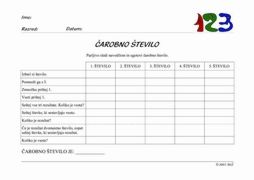 ČAROBNO ŠTEVILO Pri čarobnem številu učenci pazljivo sledijo navodilom in na podlagi pridobljenih informacij ugotavljajo, zakaj je dobljeno število »čarobno«. |