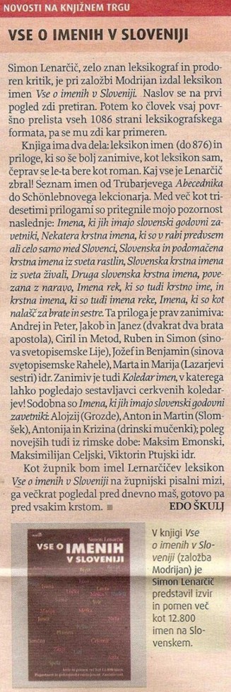 Zakaj leksikon Vse o imenih v Sloveniji ni bil(posebej) predstavljen v Delu in Pogledih?