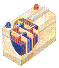 Avtomobilski akumulator v prerezu |