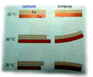 | Različne snovi se različno raztezajo. Zato se bimetalni trak, ki je