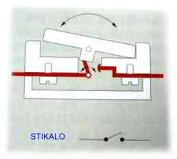 | Stikala in tipkala so naprave s katerimi vklapljamo in izklapljamo porabnike električne energije. To opravijo s premikanjem in odmikanjem kontaktnega elementa. | izklop vklop |