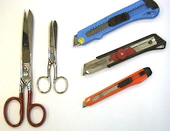 za papir (olfa nož). Kadar režemo z olfa nožem, uporabljamo kovinsko