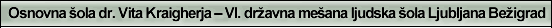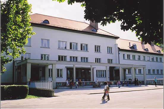 Šolsko poslopje. (SŠM, fototeka) ZGODOVINA Naslednja zanimiva šolska stavba za Bežigradom je Osnovna šola dr. Vita Kraigherja na Trgu 9. maja 1 (http://www2.arnes.si/~osljvikr4s/) . Zidati so jo pričeli leta 1934 po načrtu ing. Vlada Mušiča. Dokončno je bila pripravljena za pouk jeseni 1936, slovesno je bila odprta 11. oktobra. V zahodnem delu stavbe je bila mešana ljudska šola, vzhodni pa druga meščanska šola. Dobila je naslov Šola viteškega kralja Aleksandra I. Zedinitelja. O stavbi je njen arhitekt napisal: » Šolski objekti so postavljeni v severnem delu jame. Vsa nezazidana površina pa je ostala odprta soncu od vzhoda, juga in zahoda. Učilnice so obrnjene proti jugu, hodniki in drugi stranski prostori pa proti severu. Tako je v šolskih zgradbah in okoli njih dovolj luči, zraka in sonca. Šolska zgradba se dviga nad cestnim nivojem v dveh stopinjah do višine drugega nadstropja. Stranski krili sta nad cesto enonadstropni, od nivoja jame gledano pa trinadstropni.« Ob odprtju je imela šola naziv VI. državna mešana ljudska šola. Leta 1937 je bila spremenjena v državno poskusno ljudsko šolo. Za pedagoškega vodjo je bil imenovan Rudolf Kobilica, ki je bil dotlej predmetni učitelj na meščanski šoli v Litiji. V tem šolskem letu je bil na šoli odprt pomožni razred in dnevno zavetišče. Od leta 1937 do 1941 se je imenovalaVI. Državna mešana ljudska šola Kralja Aleksandra I. Zedinitelja v Ljubljani. Poskusna šola je delovala zelo uspešno in bila zgled vsem slovenskim šolam. Sprejemala je hospitante, ki so hospitirali ob sredah in sobotah. V šolskem letu 1938/39 je opravilo hospitacije 672 učiteljev in profesorjev. Rudolf Kobilica je želel hospitante seznaniti tudi s slovensko šolsko zgodovino in obnoviti nekdaj opuščeni Slovenski šolski muzej. Pedagoško društvo in Prosvetni oddelek banske uprave je sprejel njegov predlog in slednji je 27. maja 1938 izdal ustanovno listino muzeja. V šolskem letu 1938/39 so šole začele pošiljati podatke o zgodovini svojih šol in pa razne predmete. Leta 1940 je muzej obiskalo 350 obiskovalcev. Nadaljnji razvoj je prekinila vojna in leta 1943 so muzejsko gradivo preselili in vskladiščili v prostorih Narodne in univerzitetne knjižnice. Po vojni se je šola preimenovala v Državno mešano osnovno šolo Ljubljana – Bežigrad, leta 1960 pa v Osnovno šolo dr. Vita Kraigherja. Šolo je dolgo vodil Anton Lovše, na njej so poučevali tudi pisatelj Josip Pahor, skladatelj in zborovodja Fran Venturini in pisec pedagoških knjig in člankov Zmago Bregant. Meščanska šola je bila leta 1945 ukinjena in mesto nje ustanovljena nižja gimnazija, ki je bila ukinjena ob šolski reformi leta 1958. Meščansko šolo sta vodila Alojzij Novak, pisec knjig o deških ročnih delih ter Rudolf Pečjak pisec leposlovnih in učnih slovenskih knjig. Na šoli je deloval tudi matematik Melhior Rismal, ki je podrobno raziskoval zgodovino naših meščanskih šol. Če nadaljujemo pot najprej po levi strani Dunajske ceste je na Ulici pohorskega bataljona Osnovna šola Franceta Bevka, na Šarhovi 20 vrtec Ciciban in na Glavarjevi 18 a Vrtec Jelka. V soseski BS 7 so Osnovna šola Danile Kumar na Godeževi 11, Enoti vrtca Ciciban Ajda na Gogalovi 16 in Pastirčki na Glinškovi ploščadi 11 A. Na desni strani Dunajske ceste je sprva kar nekaj srednjih šol. Na Celjski 16 je Šolski center za pošto, ekonomijo in telekomunikacije,na Ptujski 6 Srednja poklicna in strokovna šola Bežigrad in na Dunajski 102 Srednja gradbena, geodetska in ekonomska šola. Varilska šola je na Ptujski 19. Na Kardeljevi ploščadi 16 je Srednja vzgojiteljska šola in gimnazija. Na Vojkovi 74 je Zavod za gluhe in naglušne, ki se je sem preselil z Zaloške leta 1966. Dijaški dom Bežigrad je na Kardeljevi ploščadi 28, Dom dodiplomcev pa na Gosarjevi 9. Tu je tudi center številnih fakultet. Na Gosarjevi 5 je Fakulteta za upravo, ki ima oddelek tudi na Dunajski 106. Na Kardeljevi ploščadi so še: Ekonomska fakulteta, Fakulteta za družbene vede in Pedagoška fakulteta. Na Dunajski 156 je Visoka strokovna šola za podjetništvo GEA College. V soseski BS 3 je Osnovna šola Milana Šuštaršiča na Štembalovi 2 A. Tu sta enoti Vrtca Ciciban, na Baragovi 11 Lenka in na Reboljevi 18 Mehurčki in dve glasbeni šoli, ena na Zupanovi 10 in Glasbena šola Franca Šturma na Reboljevi 18. |