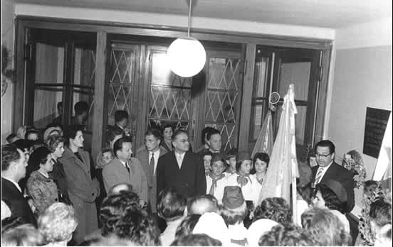 Preimenovanje šole leta 1963 po dr. Vitu Kraigherju. (SŠM, fototeka)