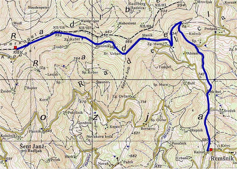 [ nazaj na osnovno stran ] KT 06 (Kapunar, 1051m) - KT 07 (Remšnik, 868m) Na zemljevidu Višinski graf (KT 06 proti KT 07) Povzetek poti - višina, razdalja