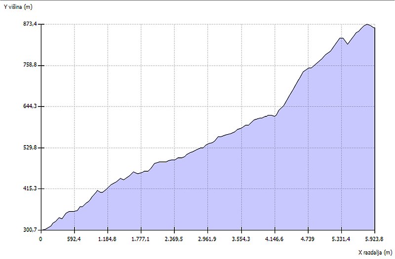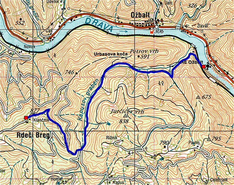 [ nazaj na osnovno stran ] KT 09 (Ožbalt elektrarna, 295m) - KT 10 (Rdeči breg, 913m) Na zemljevidu Višinski graf (KT 09 proti KT 10) Povzetek poti - višina, razdalja