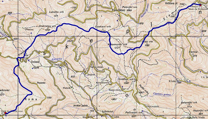 [ nazaj na osnovno stran ] KT 19 (Andrejev dom na Slemenu, 1096 m) - KT 20 (Dom na Smrekovcu, 1377 m) Na zemljevidu ![]() Višinski graf (KT 19 proti KT 20) ![]() Povzetek poti - višina, razdalja - KT 19 - KT 20
