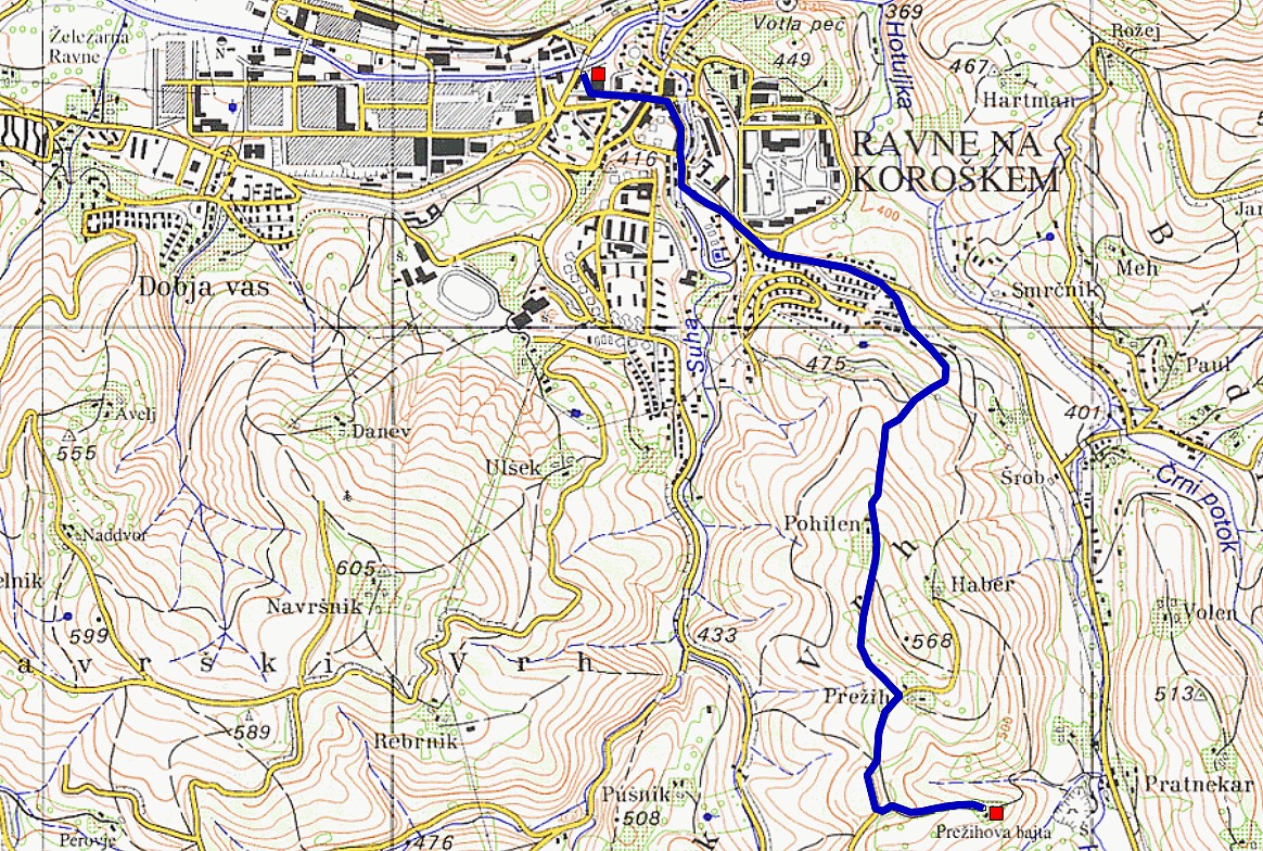 [ nazaj na osnovno stran ] KT 31 (Prežihova bajta - muzej) - KT 00 (Ravne na Koroškem) Na zemljevidu (s klikom na zemljevid se bo pojavila nova stran z večjim zemljevidom) ![]() Višinski graf (KT 31 proti KT 00) ![]() Povzetek poti - višina, razdalja - KT 31 - KT 00