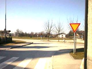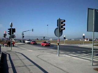 po Šolski ulici do bližnjega semaforiziranega križišča – prve prometno