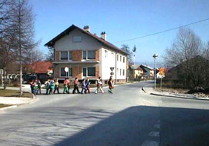 Kot peto prometno zelo nevarno mesto v bližnji okolici šole je mesto, kjer se pločnik konča in pešec lahko nadaljuje pot po slabo urejeni bankini. Zelo gost promet se odvija z neprilagojeno hitrostjo, slaba in ozka cesta pa je glavna obvoznica za voznike z magistralne »štajerske« ceste.