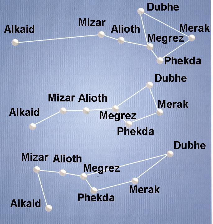 Pet od teh sedmih zvezd se po nebu giblje v skoraj isto smer