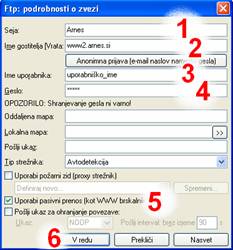 strežnik, je potrebno še vzpostaviti povezavo. To storimo s pomočjo gumba FTP (1 na sliki 57). Odpre se nam okno