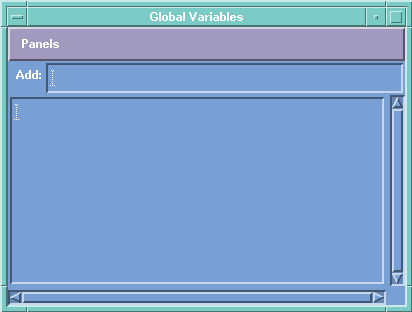 In kako vdahniti življenje našemu programu? Za to je potrebno kar nekaj programerske spretnosti. Kot prvo je treba predvideti, katere spremenljivke bomo potrebovali skozi celoten program (globalne spremenljivke). Te lahko tudi naknadno vnesemo oz. dodamo. Obenem jim lahko določimo kar začetne vrednosti. To delamo v posebnem oknu, ki ga odpremo v "meniju" Windows - Variables (to okno vidimo na sliki).