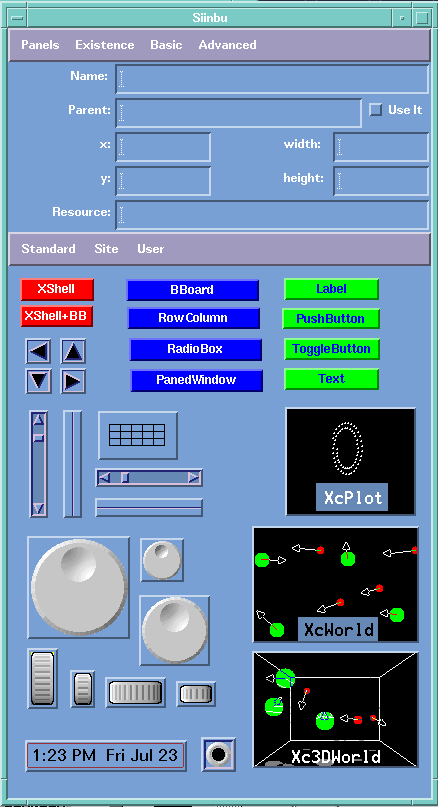 Ko se odločimo oživeti enega od doslej nefunkcionalnih gumbov, kliknemo na ta gumb imenovan Widget (objekt). Takoj opazimo, da je miška spremenila obliko. Na ta način nam poskuša program XDev povedati, da čaka na nas, da bomo izbrali nek objekt - gumb in nanj s to spremenjeno obliko miške kliknili. Ko to storimo, se v polje poleg tega gumba tak