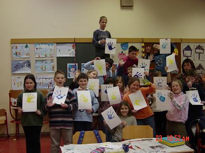 - Vsi učenci in učitelji so odtisnili svojo dlan, vse dlani smo povezali