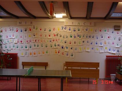 v »Verigo miru«. Veriga naših rok visi v avli šole.
