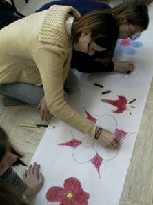 naslikali na večje formate papirja in na keramične lončke. V oddelkih