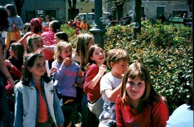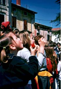 UH, KOLIKO PAPIRJA! Obenem smo istega dne obeležili tudi vstop Slovenije v Evropo in ga pozdravili s pihanjem milnih mehurčkov.