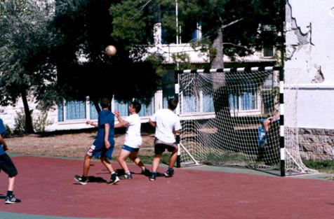 SMO ZAVZETI.. RAZGLEDNICE BODO TAKO LEPE.. Ko smo zaključili z delom v razredu, smo si na šolskem igrišču ogledali nogometno tekmo med Slovenijo in EU (učenci nogometaši so bili vnaprej določeni in so si sami izdelali majico za nastop). Pod vodstvom učiteljice glasbe so nekateri učenci oz. učenke zaigrali obe himni: slovensko in evropsko.