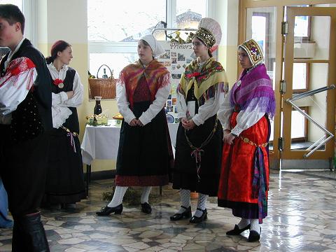 Datum: 4. april 2004 Zadeva: Poročilo o poteku POMLADNEGA DNEVA 2004 Idejni vodja in koordinator: prof. Neža Odar Zustovič Pomlad 2004 sovpada z vstopanjem Slovenije v Evropsko unijo, zato smo se odločili predstaviti Slovenijo v vsej njeni lepoti in različnosti. Upoštevali smo dejstvo, da se pri nas šolajo dijaki in dijakinje iz cele Slovenije, in da bodo pripravljeni sodelovati v projektu. Ta je bil zasnovan po načelu slovenskih pokrajin, ki smo jih razdelili na Koroško, Štajersko, Primorsko, Gorenjsko, Dolenjsko, Notranjsko in Prekmurje. Vsaka regija je bila predstavljena s plakatom, ki je prikazoval značilnosti določenega področja. Ob tem pa smo dijake angažirali, da so od doma prinesli domače specialitete, nekaj dijakov pa se je obleklo tudi v narodne noše. Po prvotni zasnovi naj bi aktivnost potekala na travniku pred šolo, vendar to zaradi slabega vremena ni bilo mogoče. Tako smo projekt postavili v avli šole. Vsaka regija je imela svoj prostor, kjer je bila predstavljena s plakatom in mizo, polno dobrot. Na gorenjski mizi so bili žganci, krapci, potica, pa še kaj bi se našlo. Na štajerskem koncu so bila predstavljena vina, na primorskem žlikrofi, olive in pršut, na notranjskem domači kruh. Pa stare, originalne bloške smučke. Eden od centrov pozornosti je bil ogromen medved, ki je opozarjal na dolenjski konec (skupaj s suho robo, špehovko in domačim sadjevcem). Na koncu avle, ki vodi v hodnik, smo montirali posebna vrata. Eno stran so dijaki pobarvali z 'evropsko' modro barvo, drugo stran pa okrasili s cvetličnimi vzorci, spet z namenom prikazati dvojnost letošnje pomladi: vstop v Evropsko unijo in prihod pomladi. Hodnik, kamor so vodila vrata, smo oblepili s plakati Evropske unije, na mizo pa položili brošure s podatki o Evropi in EU. Višek projekta je potekal v glavnem odmoru, ko so sodelavci pri projektu tudi zaplesali v narodnih nošah, nekaj dijakov pa je zaigralo na harmoniko. Predstavil se je tudi šolski zborček 'Prostovoljček', in sicer z venčkom slovenskih narodnih pesmi. Zapisala: