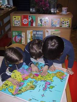 das Puppentheater. Dieses Mal wollten wir in dem Weltatlas für Kinder herausfinden wo