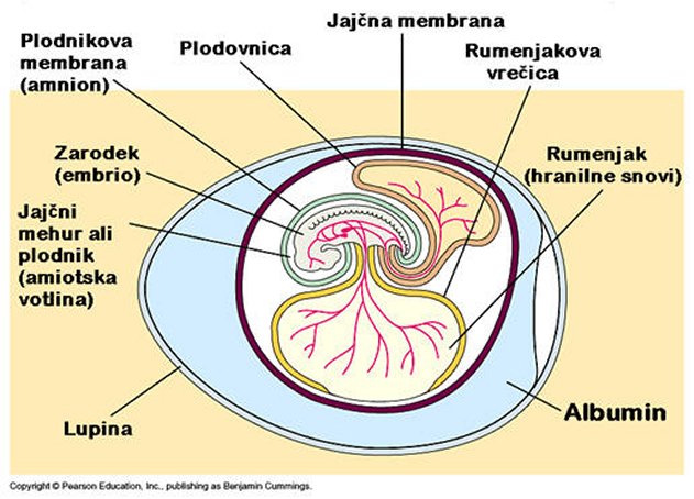 Iz zarodka izraščajo membrane, ki obdajajo rumenjak in s tem ščitijo vsebino (zarodek).