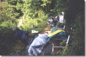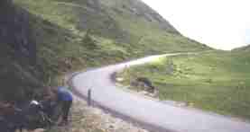naslonjeno kolo na cesto, saj se mi je že pred Zgornjem Jezerskem prviè