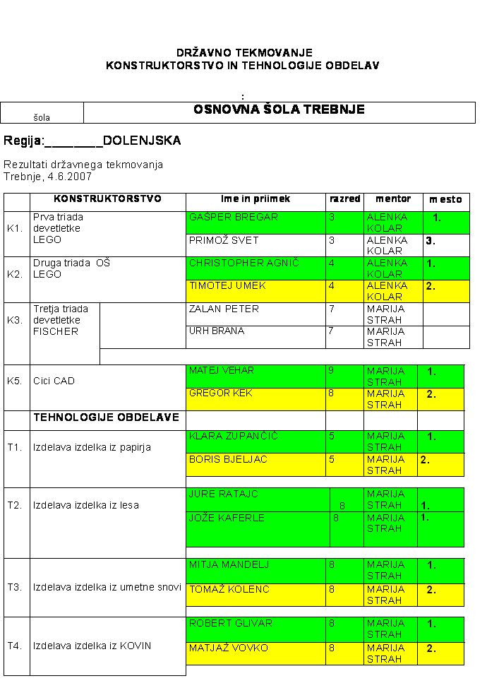 REZULTATI ŠOLSKEGA TEKMOVANJA IZ TEHNIČNEGA RISANJA Z RAČUNALNIKOM |