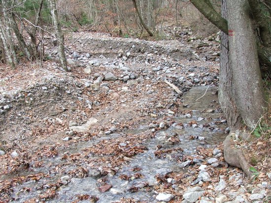 Mirnejša struga ob planinski poti proti proti Korošici. |
