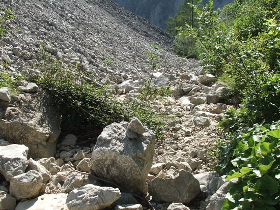 Mogočna so melišča nad Mošenikovo dolino, ali ne? Skale v strugi pa