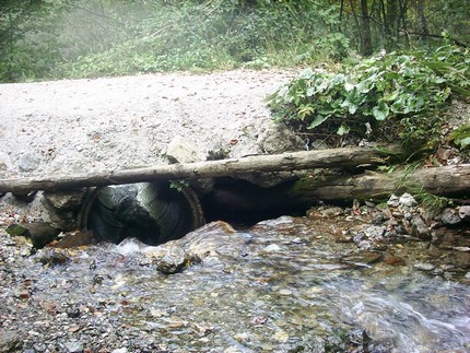 postavljena cev pod potjo na Korošico. Levo od tega prehoda je šla