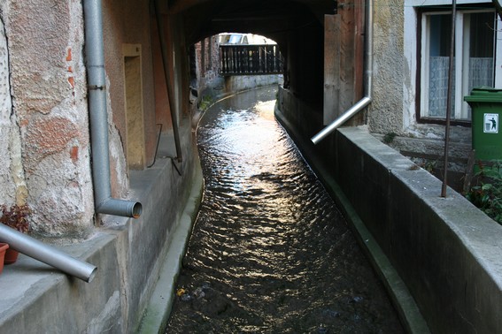 usnjarske in kovaške delavnice. Voda se je izlivala malo niže ob