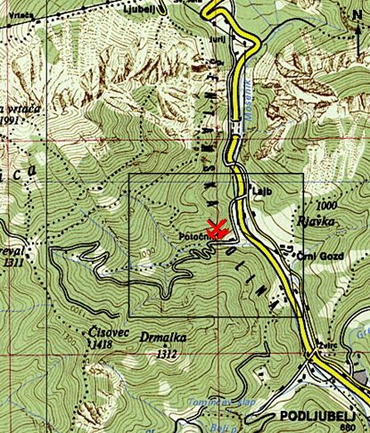 oglje, v podaljšku proti Potočnikovemu grabnu sta bili prebiralnica