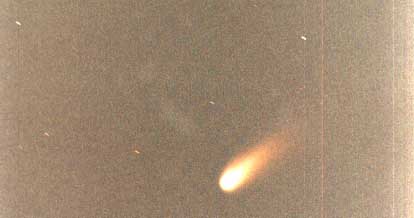 Our first observation of Comet was held on March 26th in the village Naklo from 7 to 9 pm. The weather was unpleasant: windy, cold, and partialy cloudy. We used our 12cm Tasco telescope and a wide area ocular. It was our first meeting with Comet and we were very enthusiastic. We also took some pictures as we had prepared our camera for long exsposition times earlier. Unfortunately, we had problems with the camera stand, so the pictures are not clear.