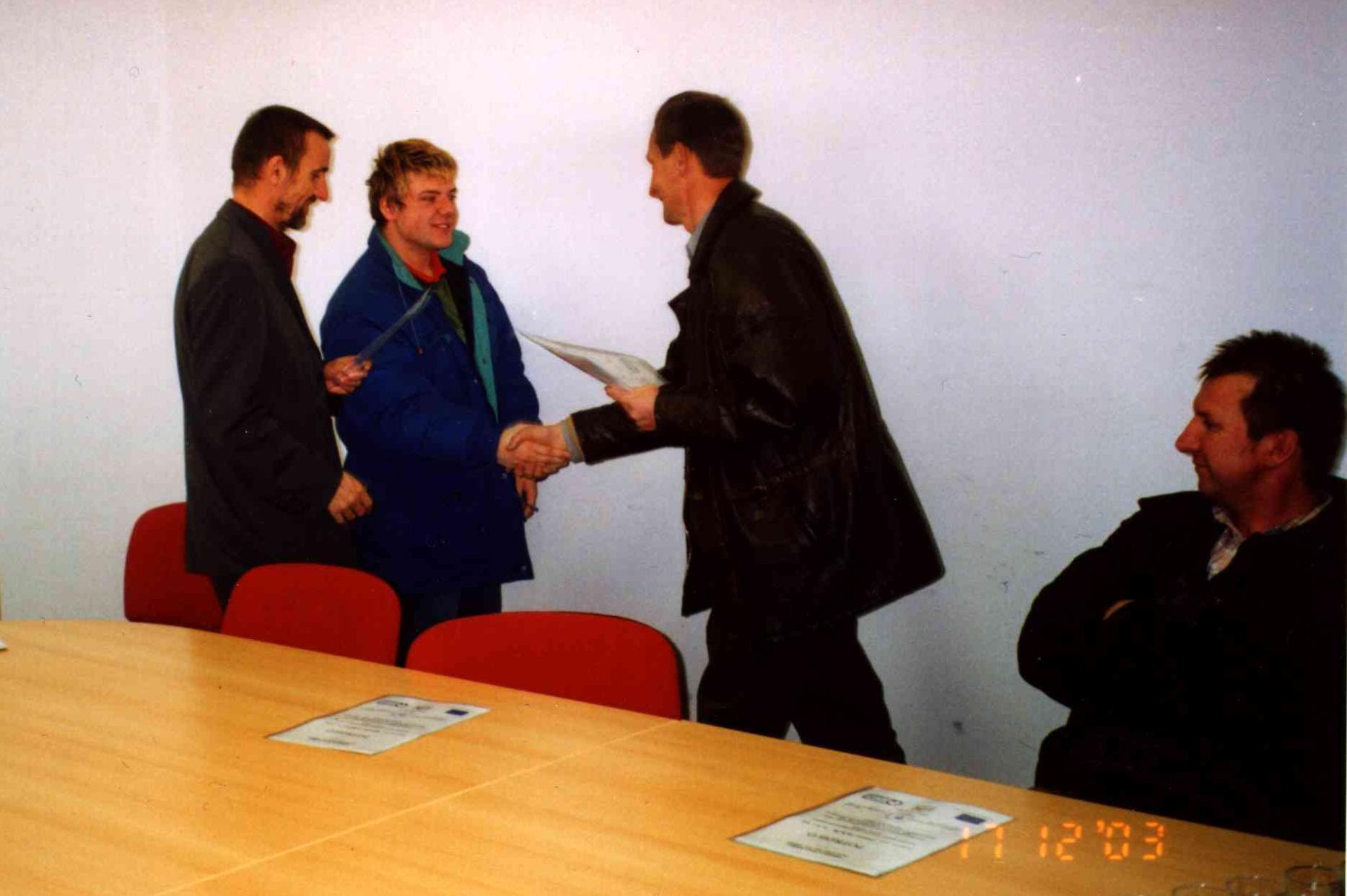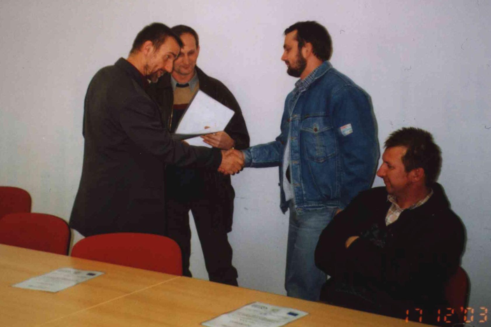 Inštruktor čestita ob uspešnem zaključku izobraževanja.