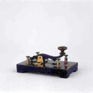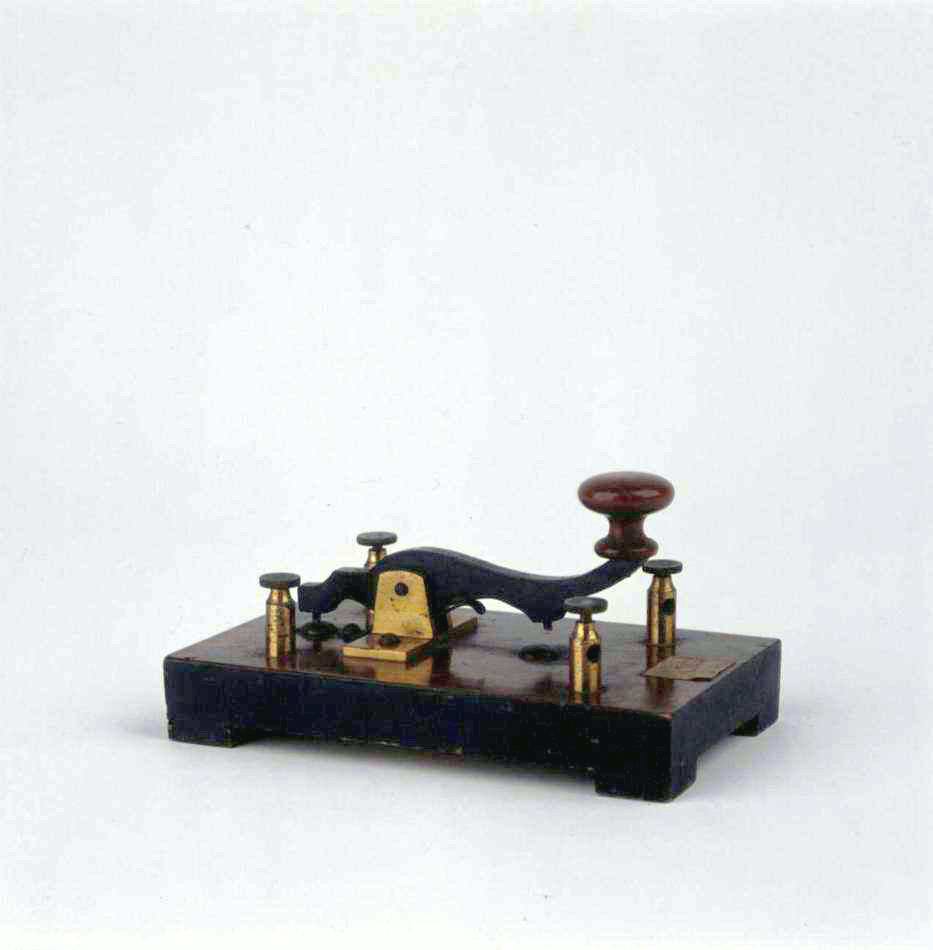 E’ un commutatore a una via e due posizioni. Il fulcro e le due incudinette di contatto fanno capo a robusti morsetti. Quando il tasto è in posizione di riposo, la linea risulta collegata al ricevitore locale anzichè alla pila, cosicchè la stazione è pronta per ricevere le chiamate. |