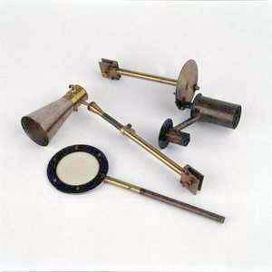 Il banco fu inventato da Macedonio Melloni per lo studio della radiazione infrarossa o “calore raggiante”. Su una barra d’ottone si ponevano: una lampada ad olio (sorgente) ed una pila termoelettrica (rilevatore) ed altri accessori per mostrare la riflessione, rifrazione, polarizzazione e assorbimento delle radiazioni. |