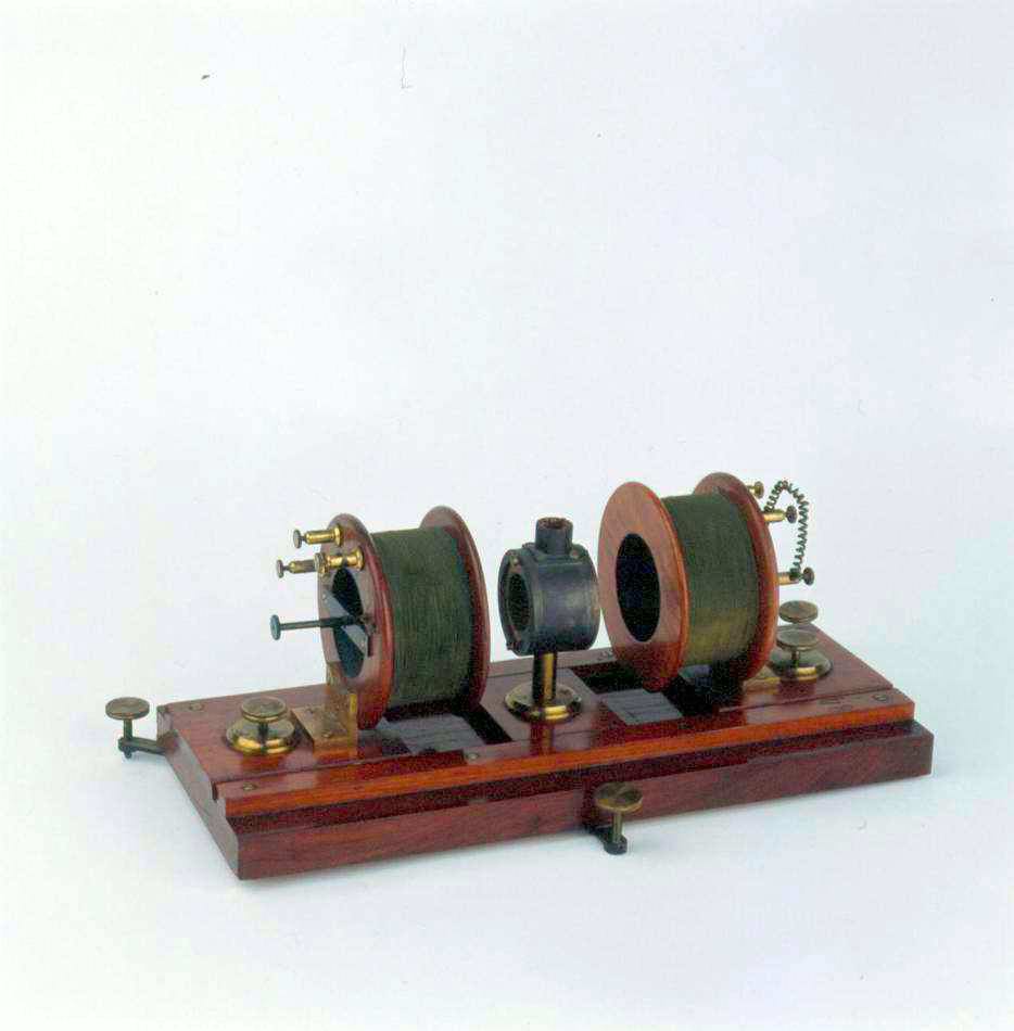 L’equipaggio mobile, formato da un piccolo magnete, si trova tra due bobine in cui passa la corrente da misurare: cambiando le bobine o facendole scorrere su apposite guide, è possibile variare la sensibilità dello strumento. Le letture avvenivano con il metodo detto a specchio: un raggio luminoso veniva riflesso su di uno specchietto fissato al filo di sospensione del magnete e i suoi movimenti venivano misurati su di un’apposita scala graduata. |