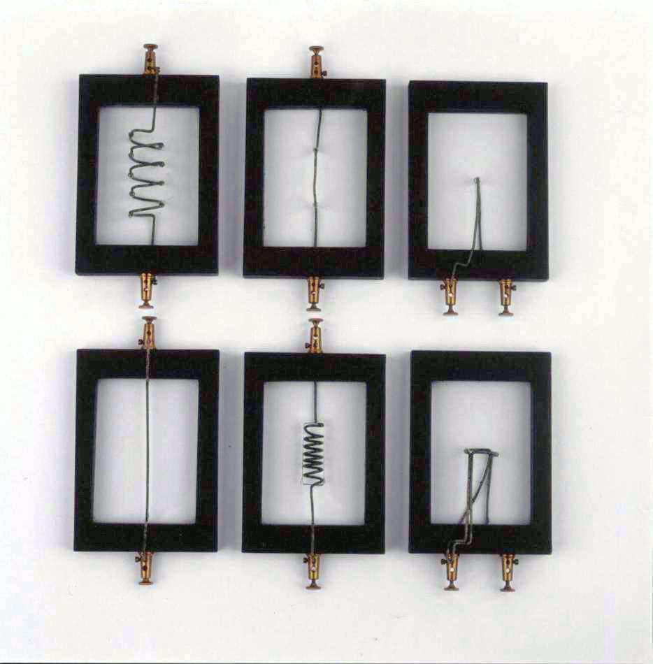 I riquadri venivano collegati ad un circuito a corrente continua e ricoperti di limatura di ferro. Al passare della corrente elettrica la limatura si disponeva sulle linee di campo. |