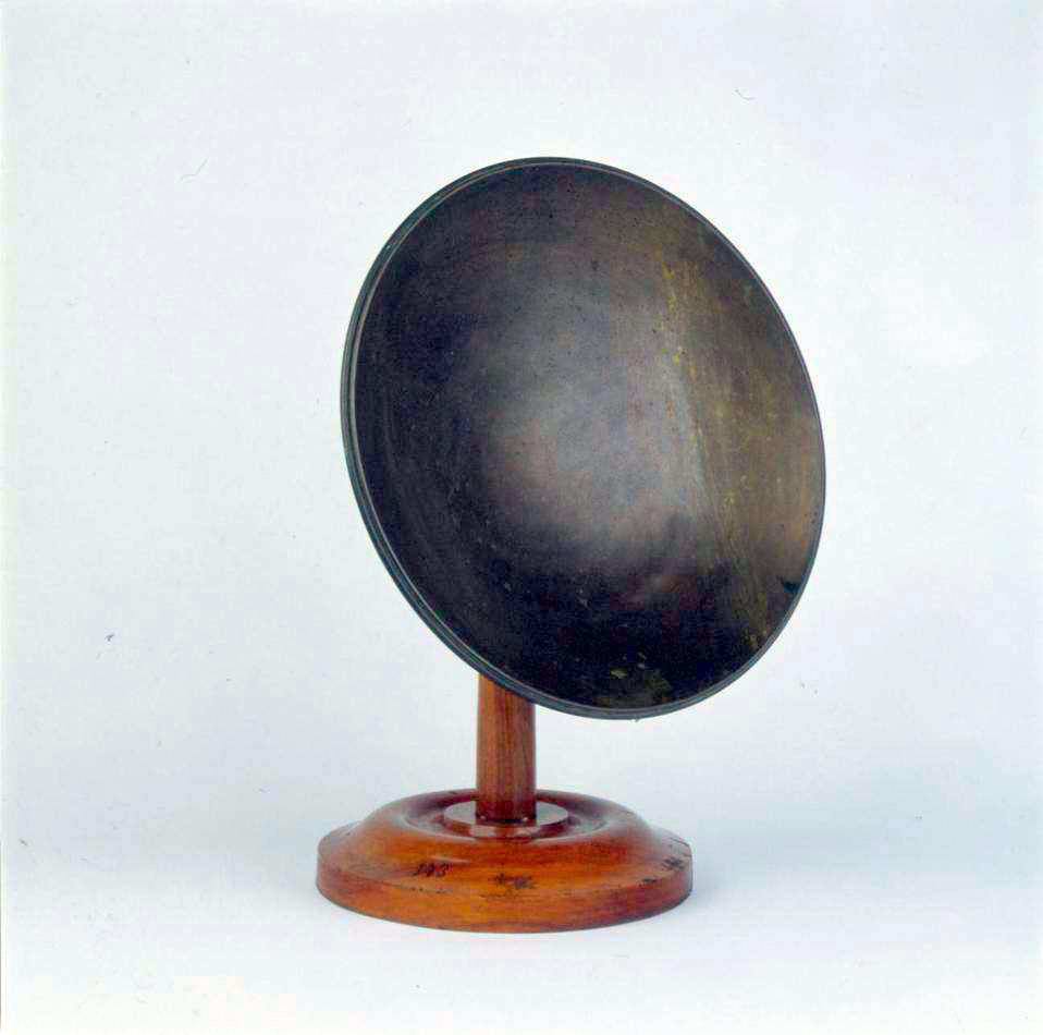 Si dimostrava la focalizzazione dei raggi infrarossi. Sotto una campana di vetro, in cui poteva essere fatto il vuoto, si mettevano due specchi sferici in metallo argentato. Un filo metallico collocato nel fuoco di uno degli specchi veniva arroventato mediante una corrente elettrica che provocava la combustione della polvere pirica collocata nel fuoco dell’altro specchio che stava di fronte. |
