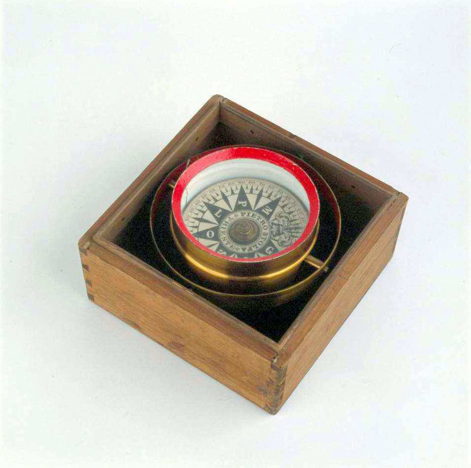 La rosa dei venti è contenuta in una cassetta in legno. Fu ideata per rilevare la posizione del Sole al tramonto e all’alba attraverso le finestre laterali che recano fili verticali. Questi fili gettano la propria ombra su un bordo rialzato della bussola, dando così la misura angolare, che può essere confrontata con tavole. |