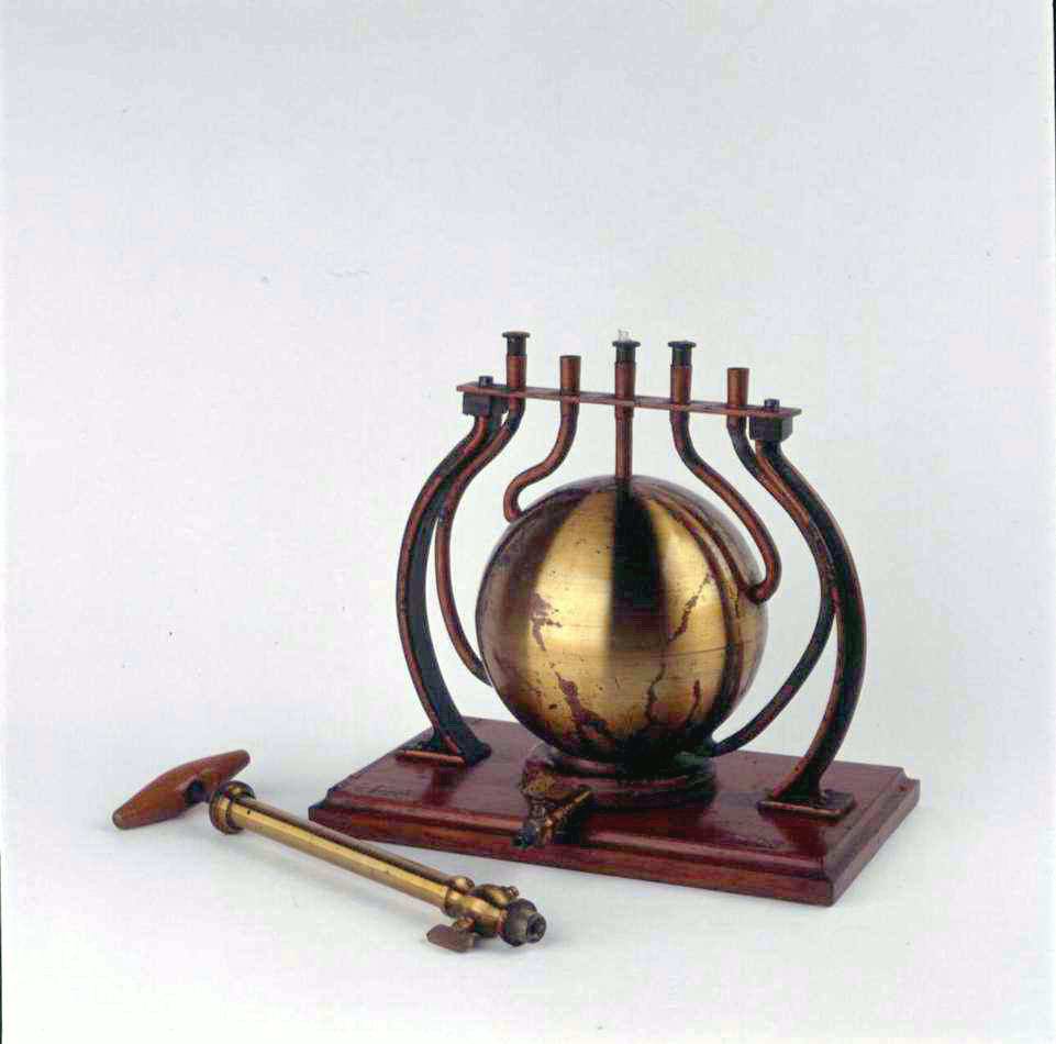 Si riempiva la sfera di rame di acqua che spinta dalla pompa usciva dai fori alla stessa pressione.