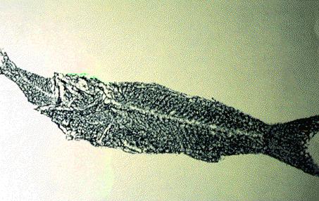 Fosil - riba s plenom Riba je bila zasuta na hitro, med "kosilom"