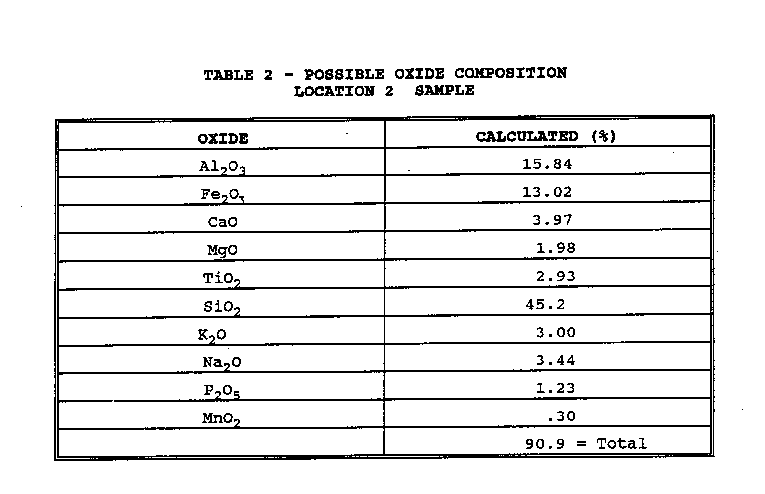 Analiza vzorca v bližini ladje - sestava oksidov