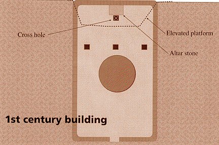 Temelji zgradbe iz prvega stoletja obdajajo luknje za križanje, veliki okrogli