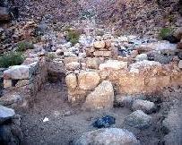 Poleg oltarja ob vznožju gore so ostanki nekakšnega svetišča, zgrajenega