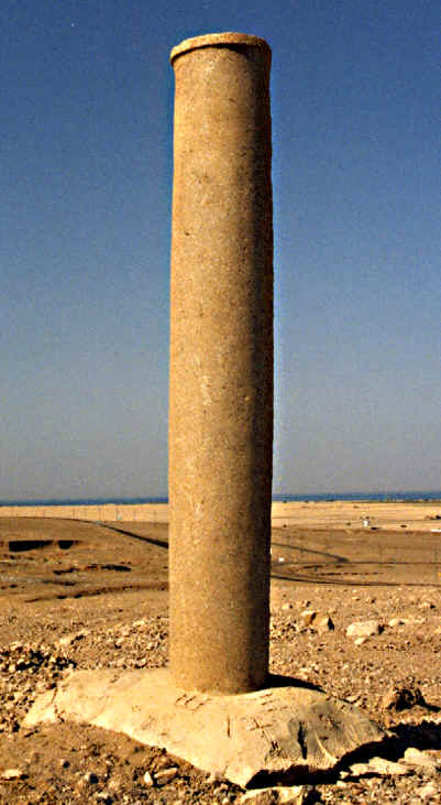 Slika: Steber. Našli so po enega na egiptovski in arabski strani Akabskega zaliva. Na "arabskem" je bil še ohranjen napis v starohebrejski pisavi. (Glej: Prehod čez Rdeče morje.)